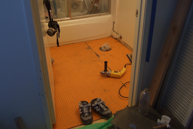 Installed new floor tiles in our small bedroom's bathroom. I really enjoyed using Schluter Ditra as the subfloor membrane—super easy install and provides water proofing and decoupling.