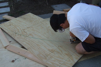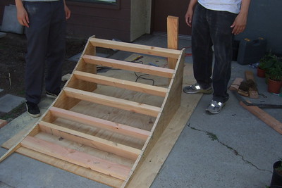 Some friends and I building a jump ramp for a movie+skate jam at the Downtown Independent's showing of Thrashin.